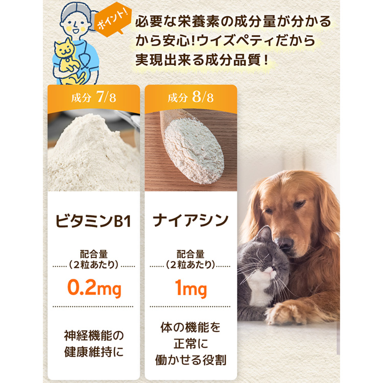 - サプリメントは栄養補助食品なので、用法・容量を守れば、それ自体に副作用はありません。心配な場合は、ご利用の前に、獣医にご相談ください。
