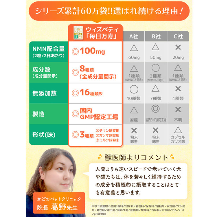| 商品名 | 犬猫兼用・毎日万寿 NMN&レスベラトロール |