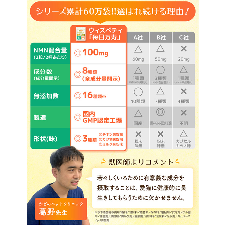 | 商品名 | 猫用・毎日万寿 NMN&レスベラトロール |